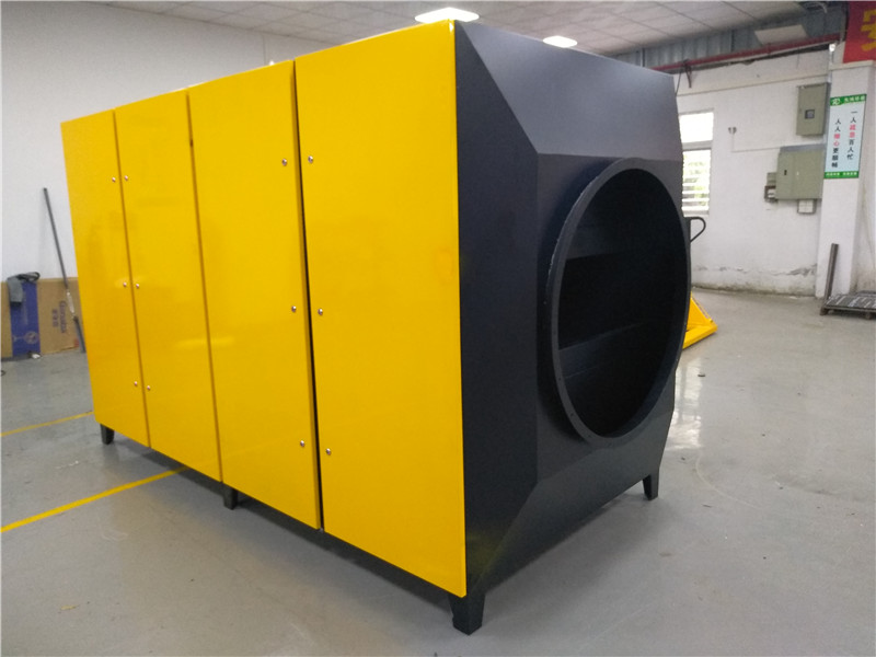 當含氯代烴、有機磷氨基甲酸酯類、苯醚、正硝基氯苯、萘、乙烯二甲苯酚、苯酚、DDT、艾氏劑烷基苯磺酸、酯類和芳烴化合物等苯類、酮類、醇類、、烷類氣體進行活性炭箱,這些有機廢氣被活性炭吸附截留,未吸附的氣體從活性炭出口經風機與排氣管排入大氣中。