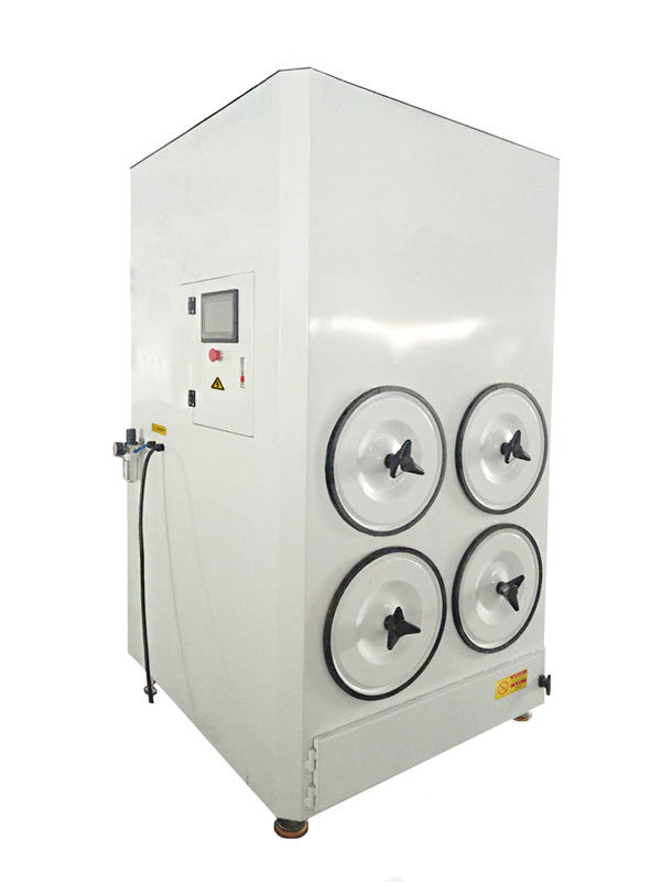 設有氣缸、文氏管、電磁閥、時間控制、壓差控制等組成的清灰裝置,通過壓縮空氣強力的反吹,可在短時間內有效抖落附著在濾筒上的粉塵。有自動模式,更方便操作。設有調壓閥、油水分離器,保障清灰系統高效、穩定、安全運行。