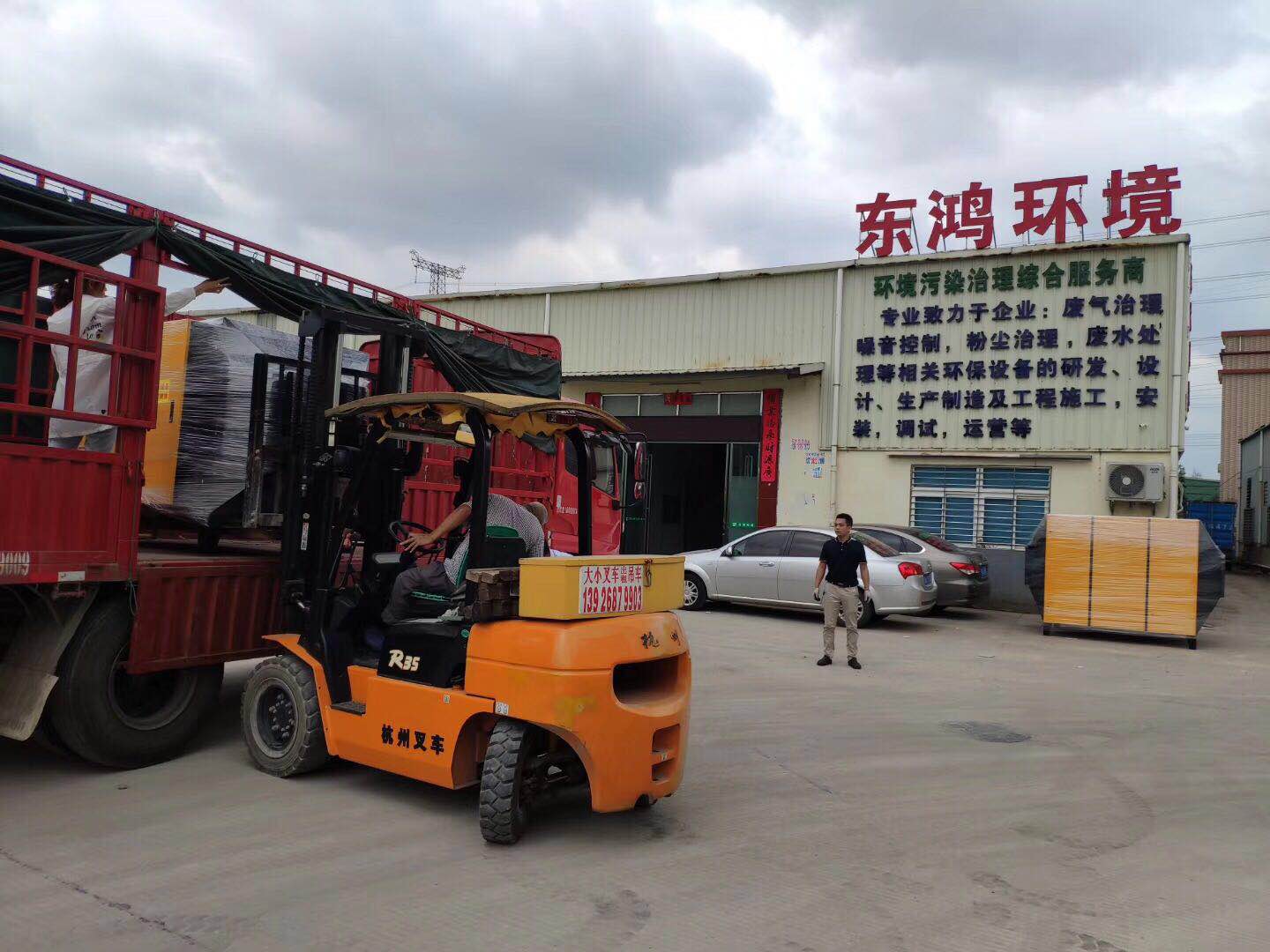 烈日炎炎,兩車東鴻環(huán)保設(shè)備發(fā)往福建