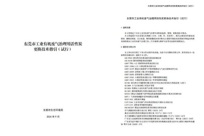 ▲東莞市工業有機廢氣治理用活性炭更換技術指引