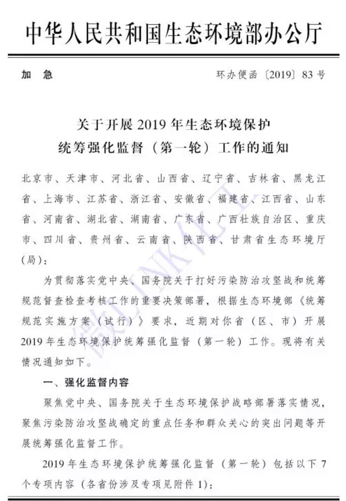 2019年生態(tài)環(huán)境保護統(tǒng)籌強化監(jiān)督(第一輪)包括以下7個專項內(nèi)容: